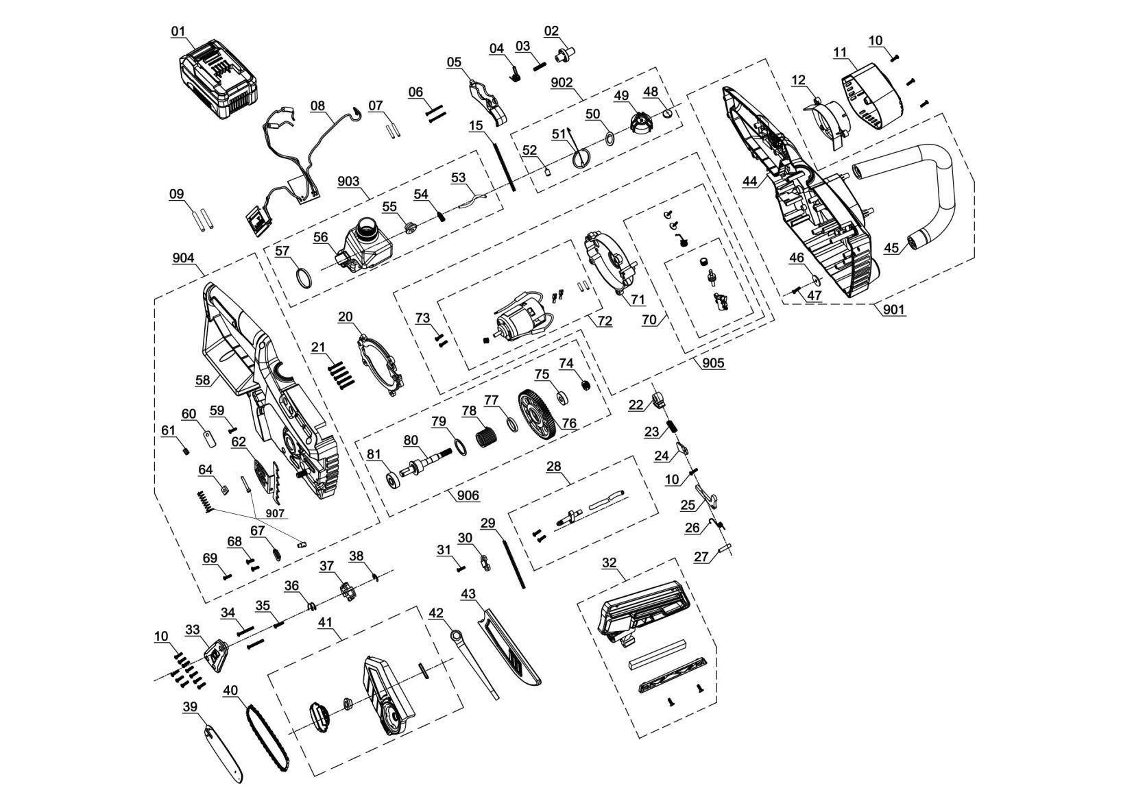 The Ozito PXCCSS-018 Cordless Chainsaw is ideal for trimming branches, felling trees up to 230mm (8"") diameter, cutting small logs and sawing small timber. Safety features include an automatic chain brake that will engage in the event of kickback and metal bucking spikes that assist with the cutting action and help reduce the possibility of kickback. Automatic chain oiling keeps both the bar and chain lubricated, which reduces the level of friction and helps prolong the life of the tool. Choose the 18V Lithium Ion Battery for the run time you need.